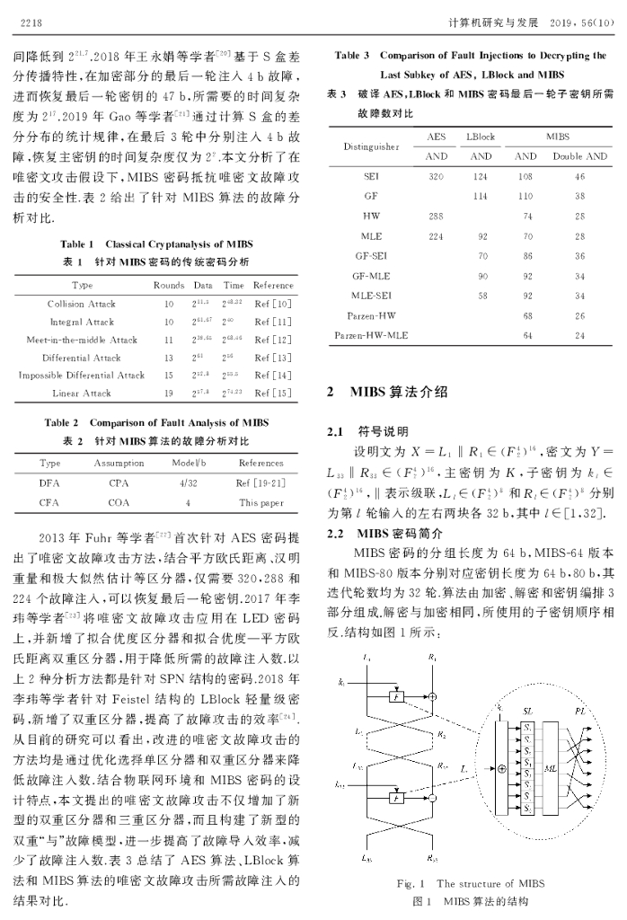 物联网中MIBS轻量级密码的唯密文故障分析.pdf