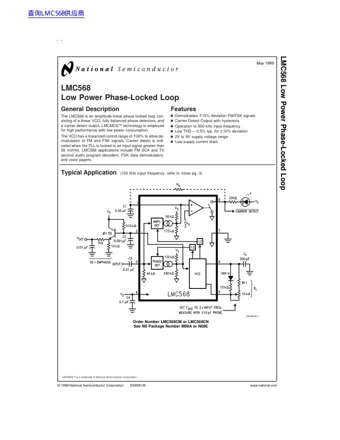 National Semiconductor LMC568 Low Power Phase-Locked Loop 数据手册.pdf