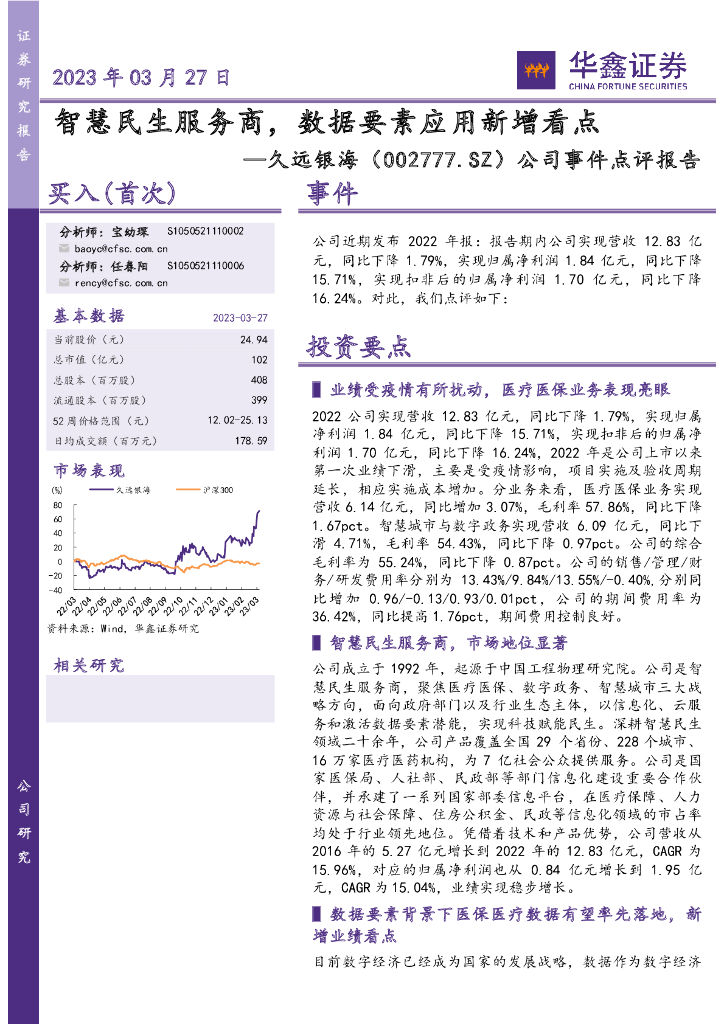 华鑫证券:久远银海(002777)-公司事件点评报告:智慧民生服务商,数据要素应用新增看点.pdf
