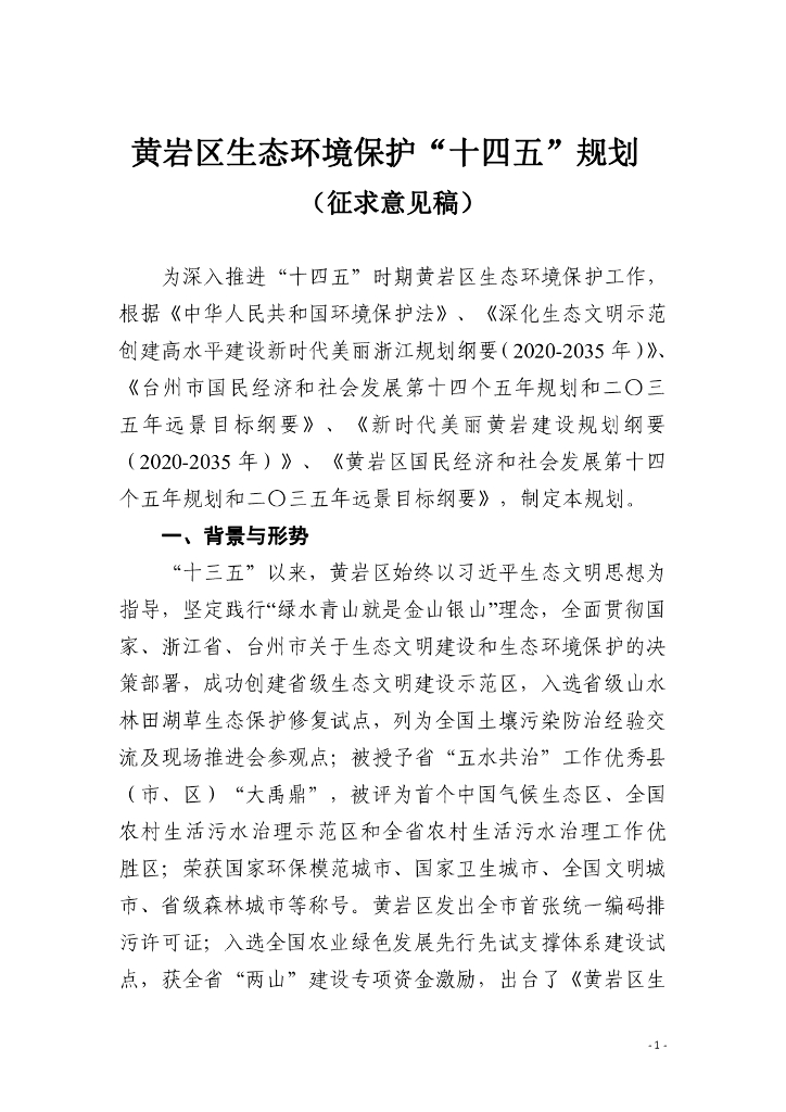 黄岩区生态环境保护“十四五”规划(征求意见稿).pdf
