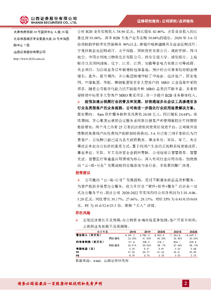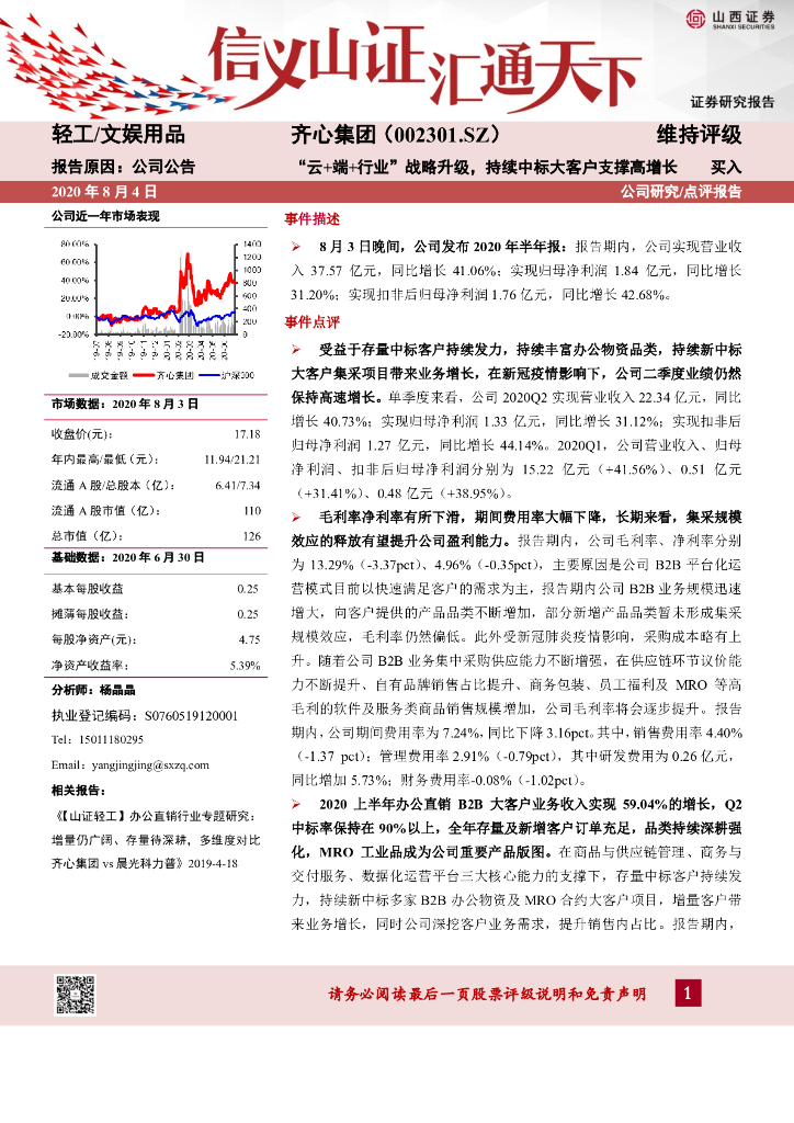 山西证券:齐心集团(002301)-“云+端+行业” 战略升级,持续中标大客户支撑高增长.pdf