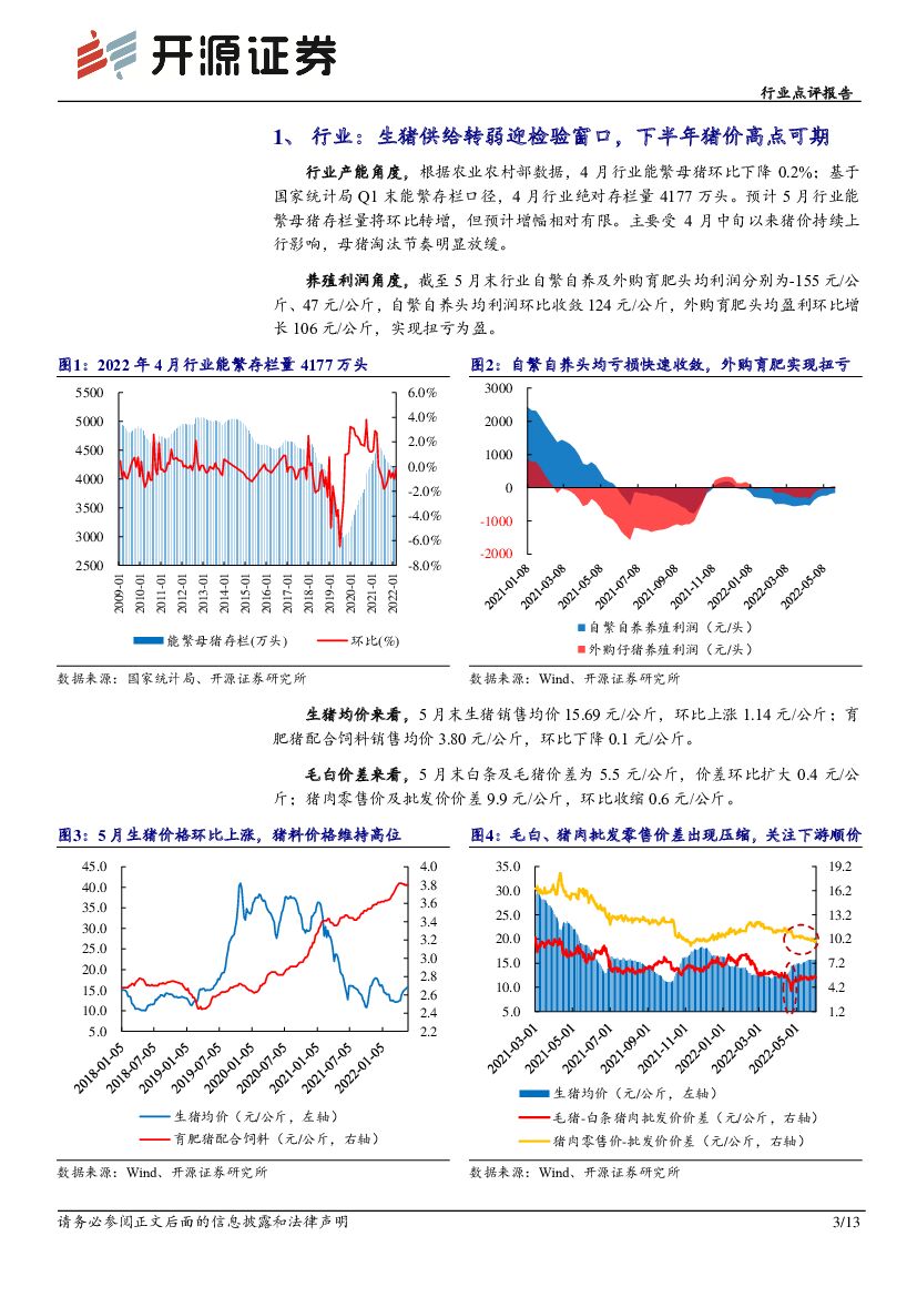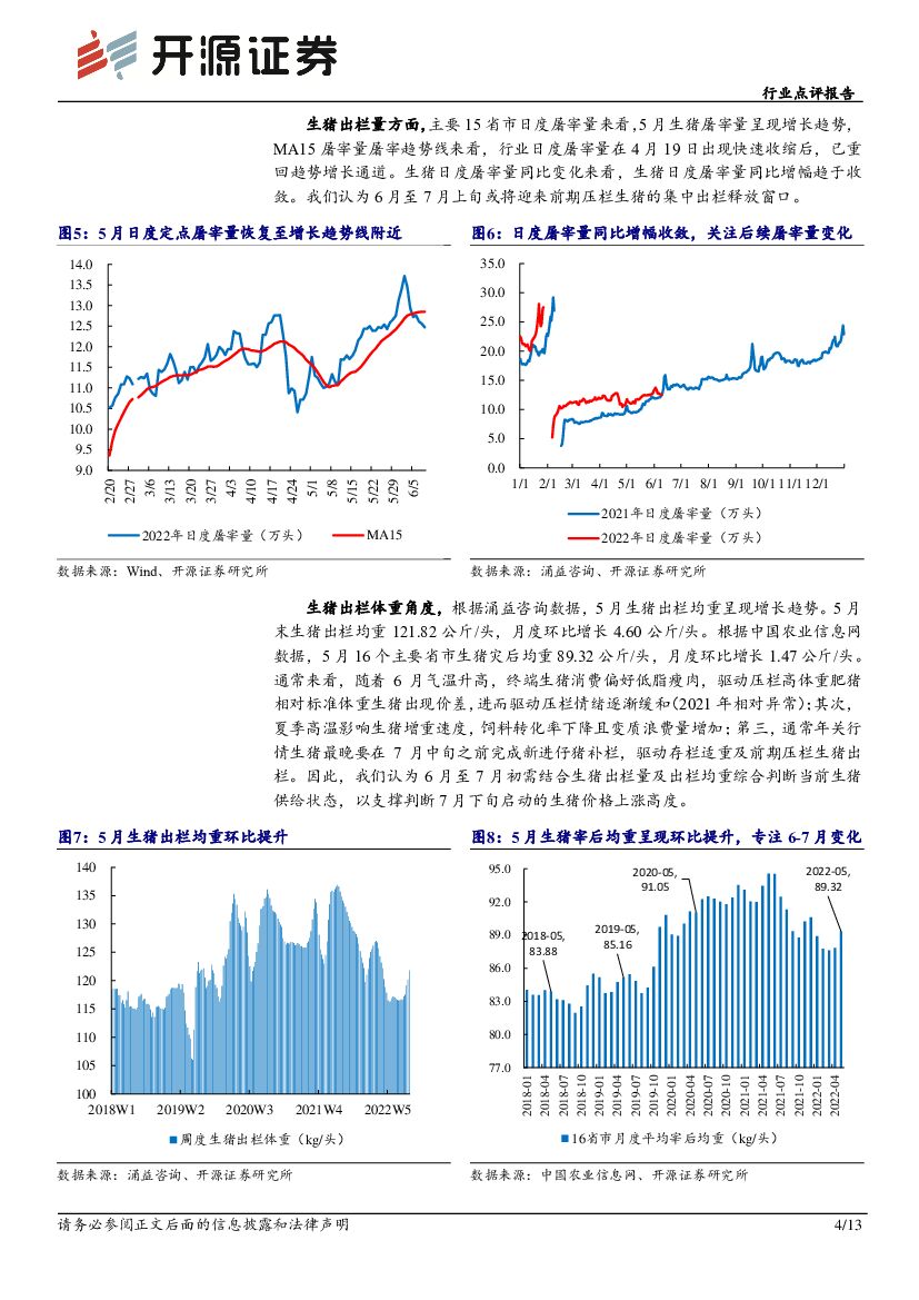 开源证券:农林牧渔行业点评报告:5月上市猪企生猪出栏量环比下降,均重环比提升.pdf
