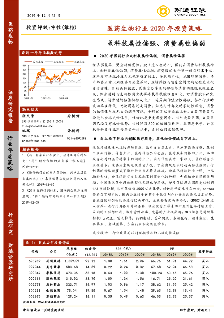 财通证券:医药生物行业2020年投资策略:或科技属性偏强、消费属性偏弱.pdf