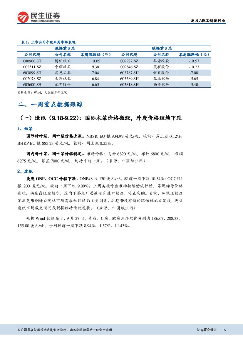民生证券:轻工制造行业周报:国内木浆价格趋稳,纸品价格继续上涨.pdf