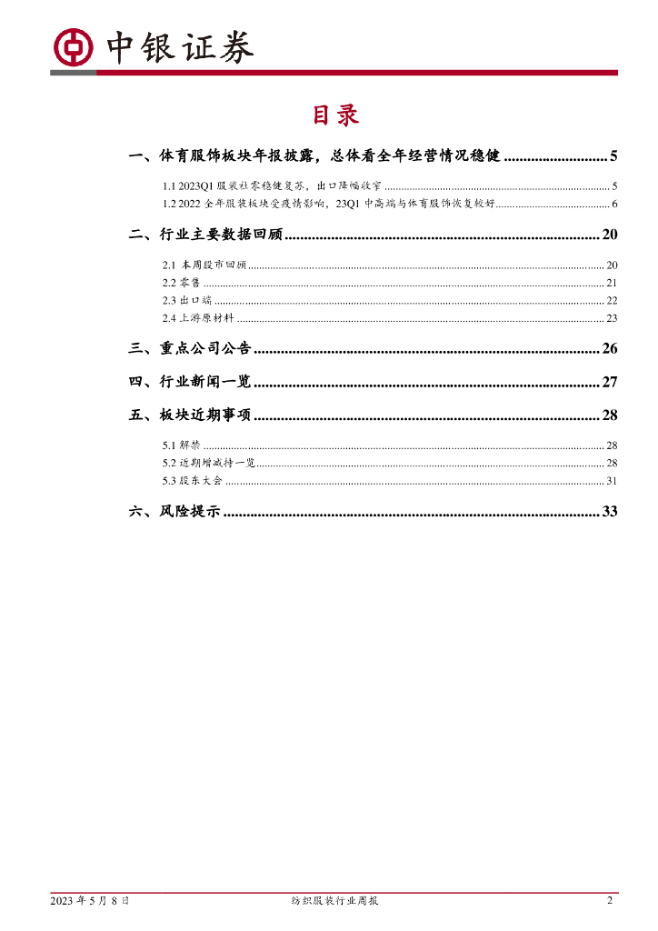 中银证券:纺织服装行业周报:Q1展现服装修复弹性,需求有望进一步释放.pdf