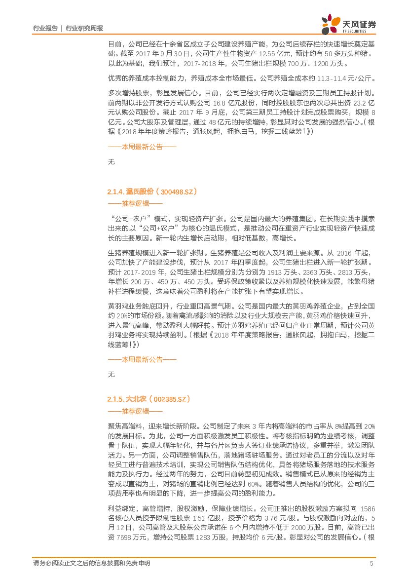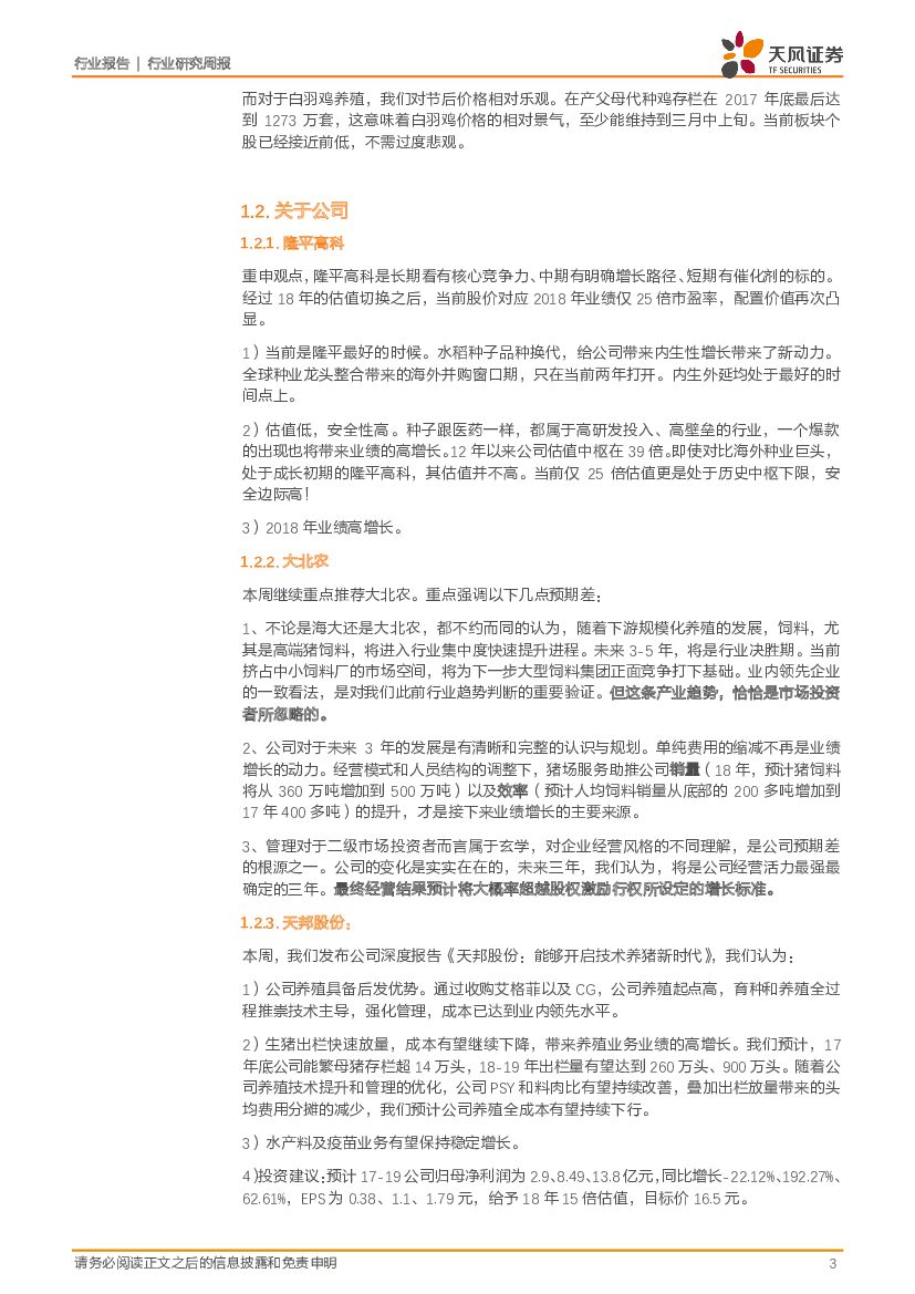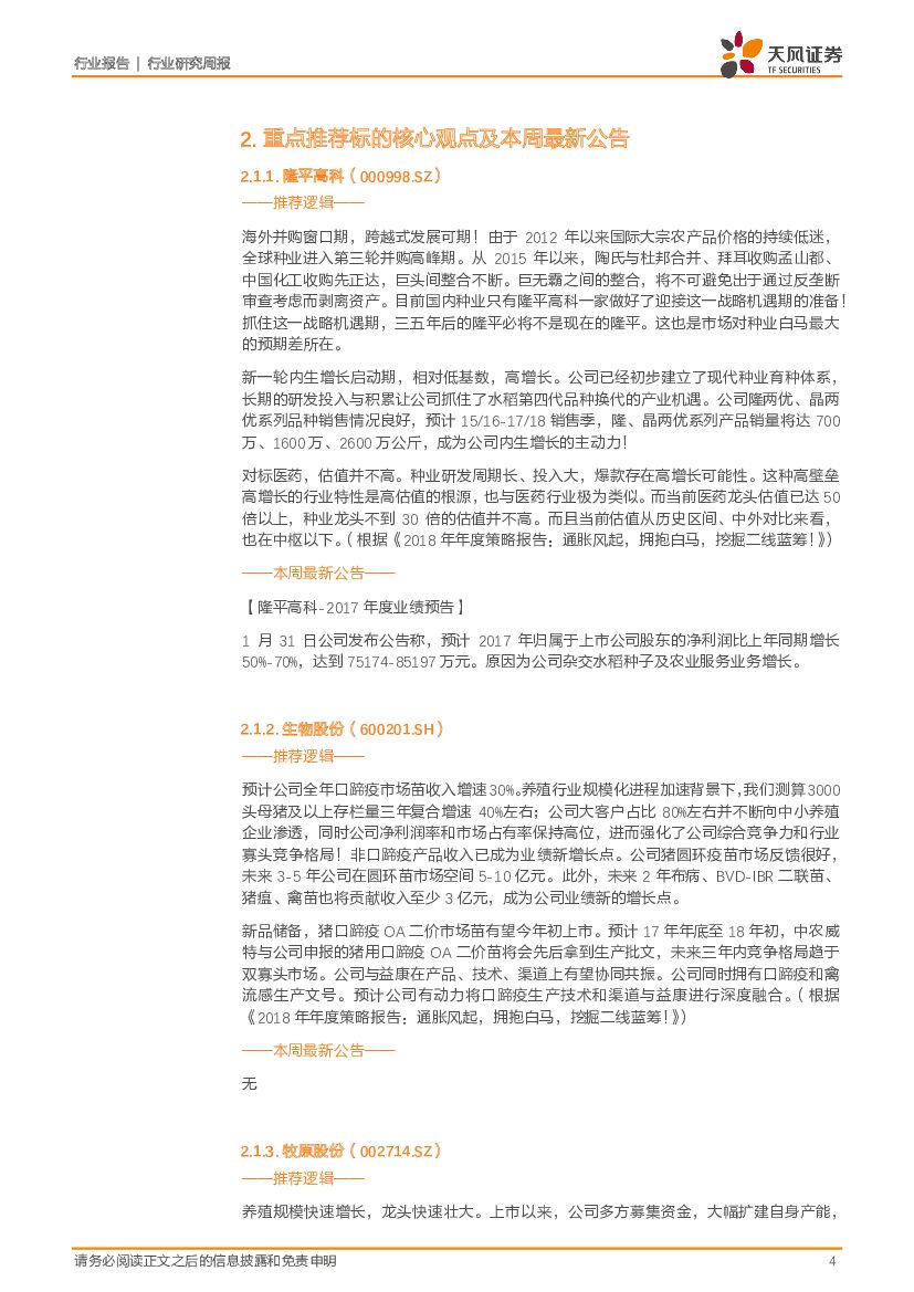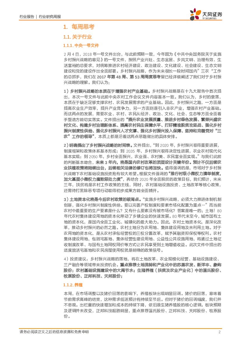 天风证券:农林牧渔行业研究周报:2018年第5周周报:一号文落地,本周建议超配农业:推荐:隆平高科(龙头),大北农(低估值)、其次动保双雄,通胀养猪成长标的!.pdf