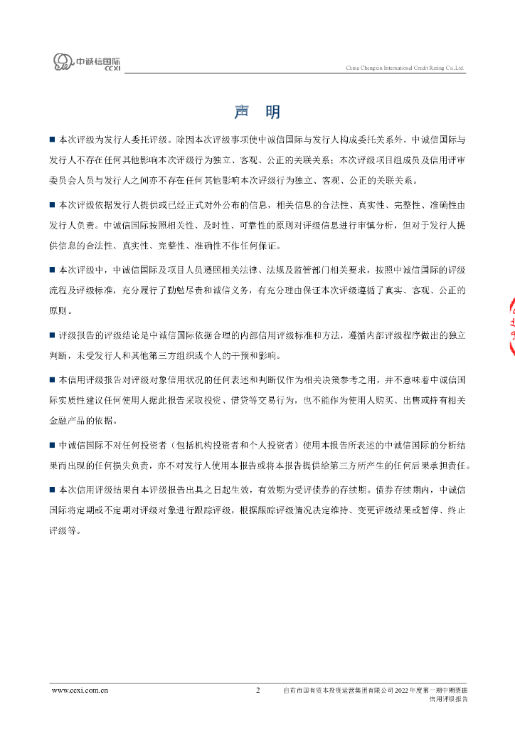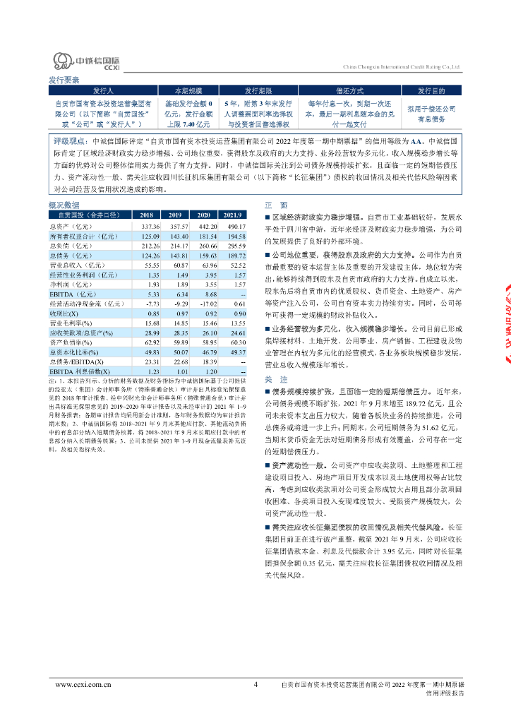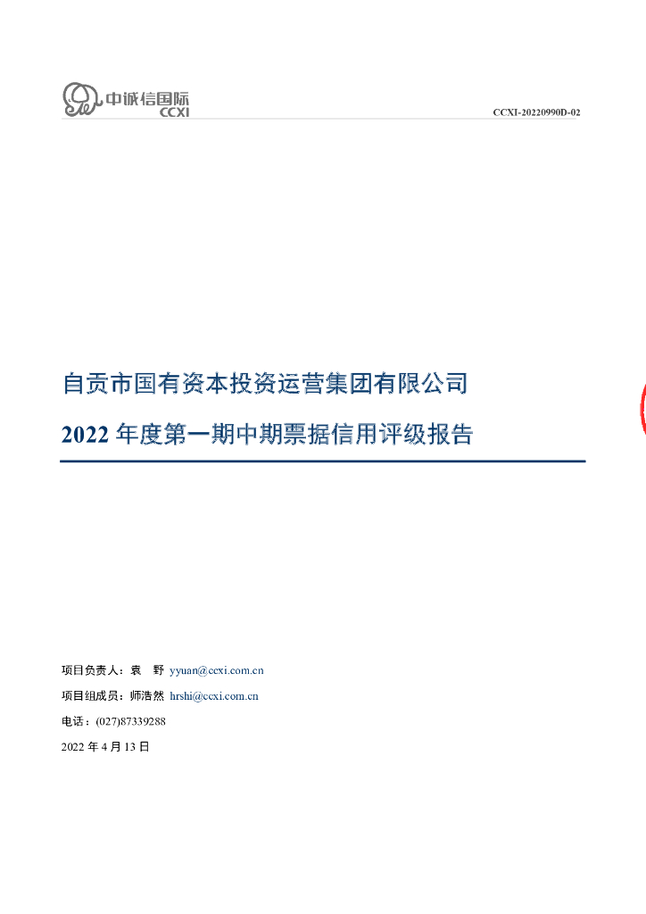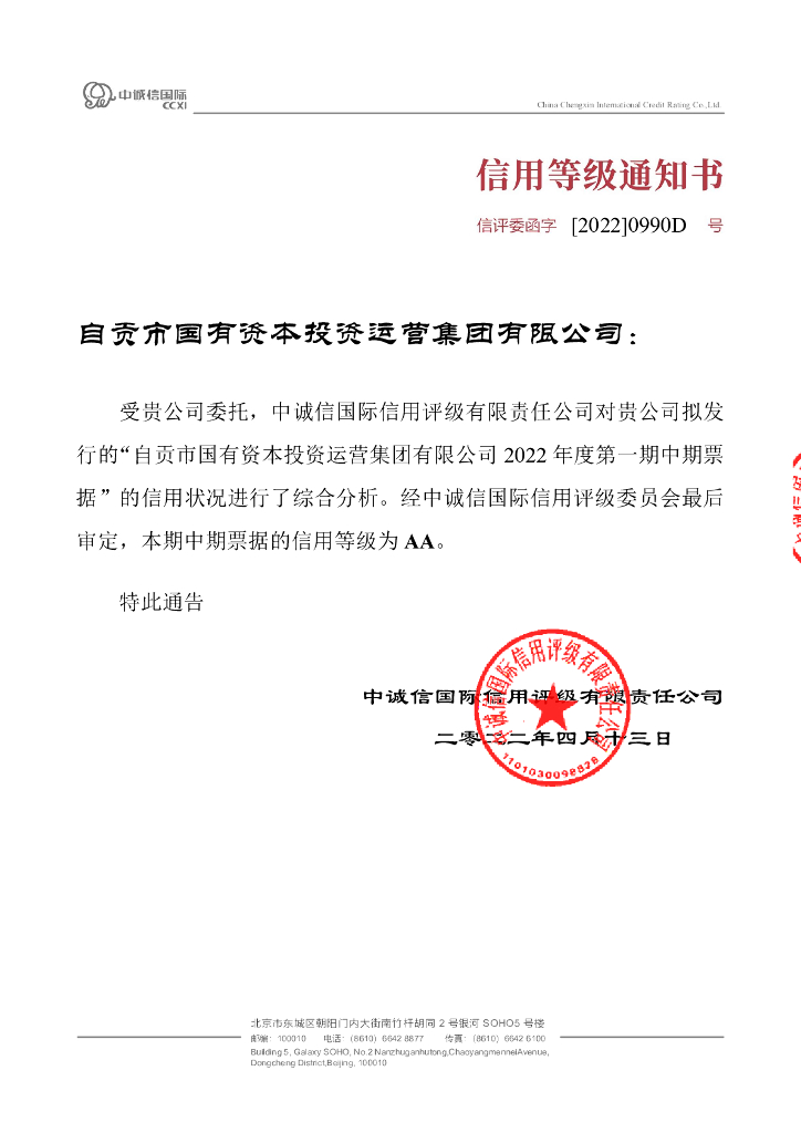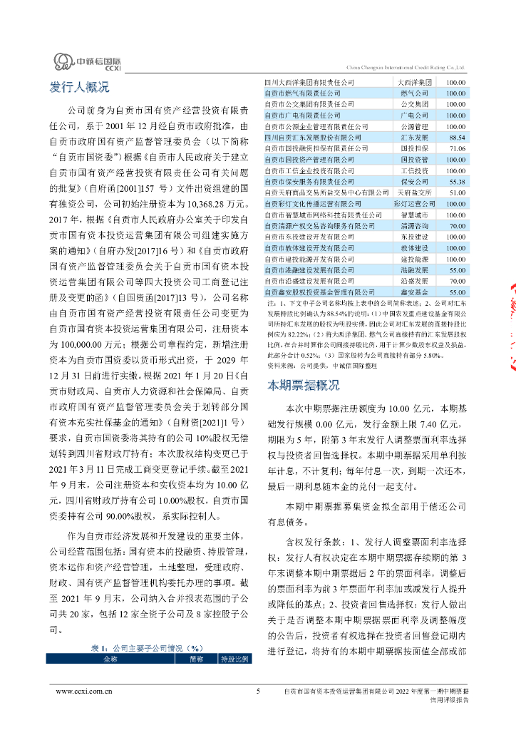 中诚信:自贡市国有资本投资运营集团有限公司2022年度第一期中期票据信用评级报告.pdf