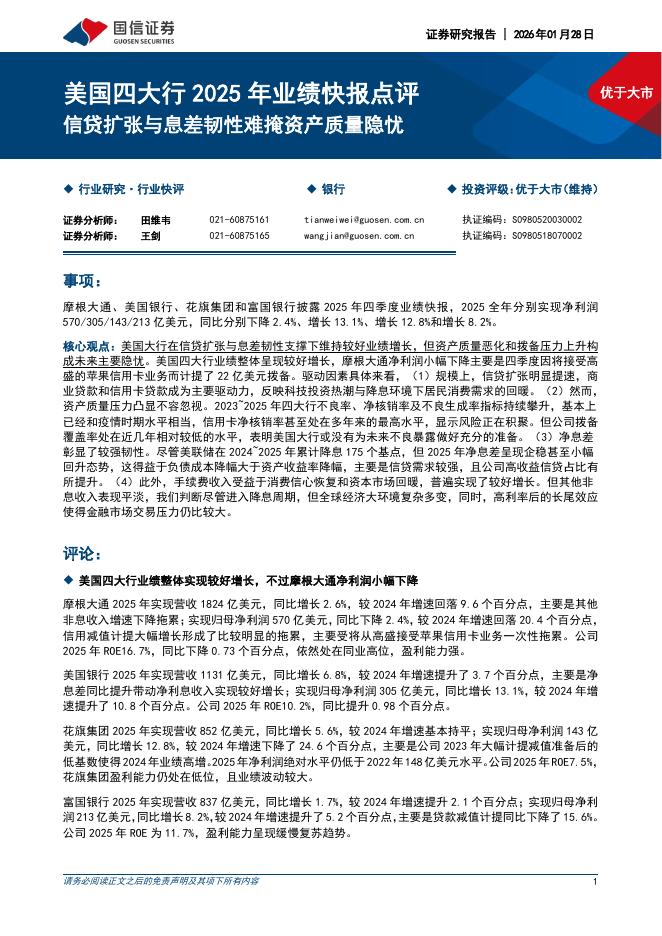 国信证券:银行:美国四大行2025年业绩快报点评-信贷扩张与息差韧性难掩资产质量隐忧.pdf