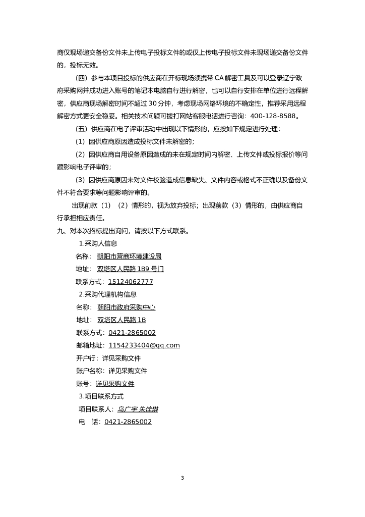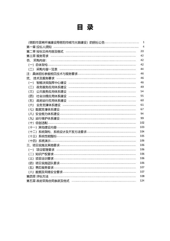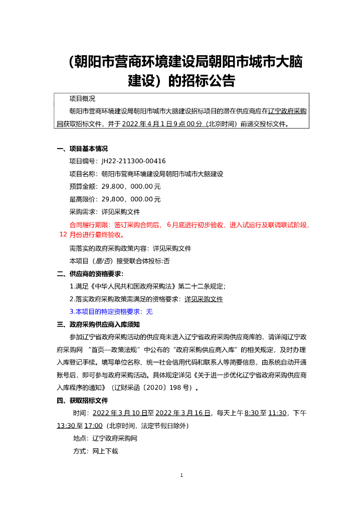 朝阳市政府采购项目服务类公开招标招标文件:朝阳市营商环境建设局朝阳市城市大脑建设项目.doc