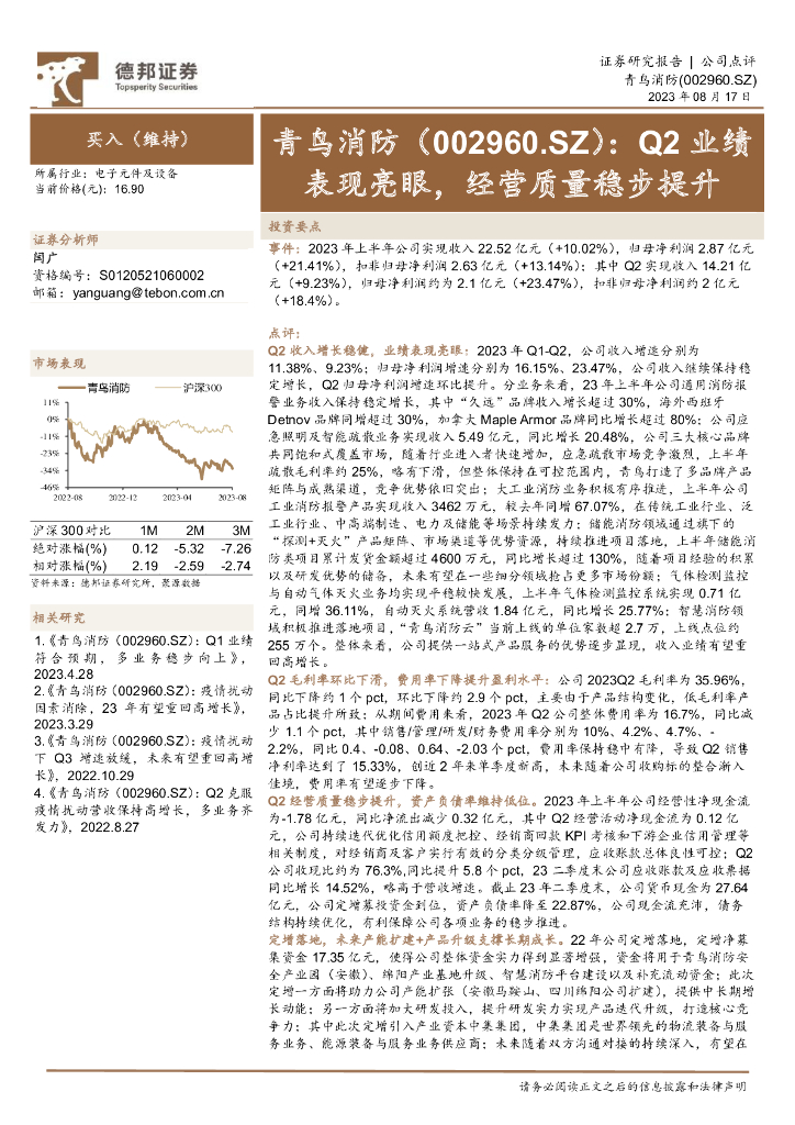 德邦证券:青鸟消防(002960)-Q2业绩表现亮眼,经营质量稳步提升.pdf