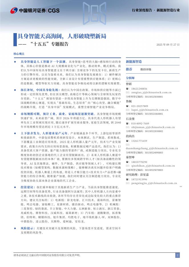 中国银河:新能源智造行业行业深度报告:“十五五”专题报告-具身智能天高海阔,人形破晓塑新局.pdf