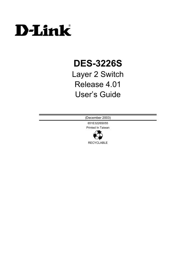 D-Link DES-3226S Layer 2 Switch Release 4.01 User’s Guide.pdf