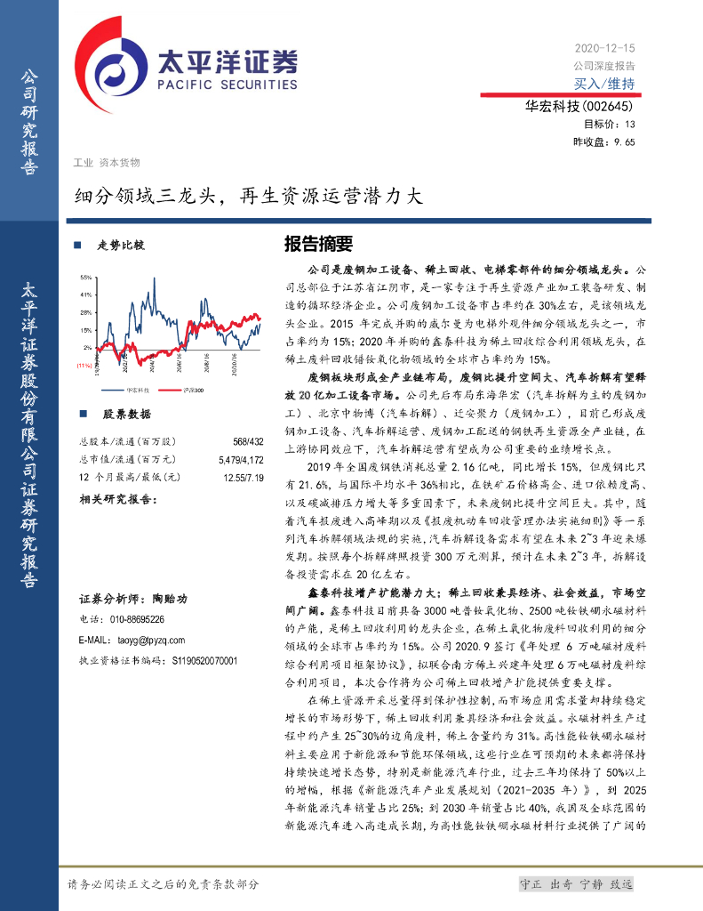 太平洋证券:华宏科技(002645)-细分领域三龙头,再生资源运营潜力大.pdf