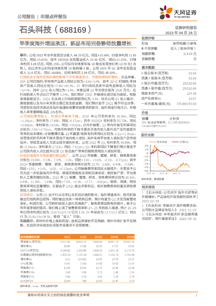 天风证券:石头科技(688169)-单季度海外增速承压,新品布局完备静待放量增长.pdf