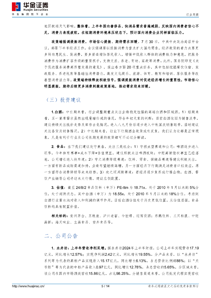 华金证券:食品饮料行业周报:外企中国区域承压,政治局会议强调促消费.pdf