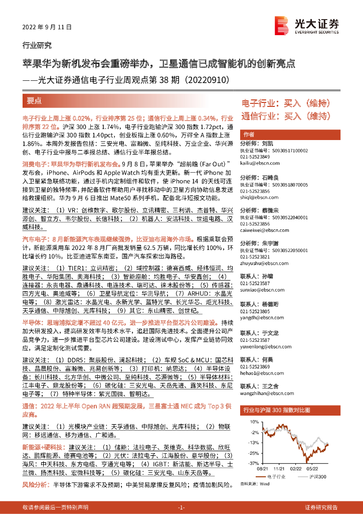 光大证券:通信电子行业周观点第38期:苹果华为新机发布会重磅举办,卫星通信已成智能机的创新亮点.pdf
