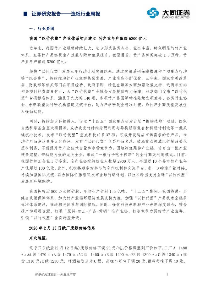 大同证券:造纸行业周报:龙头纸企提价待落地.pdf