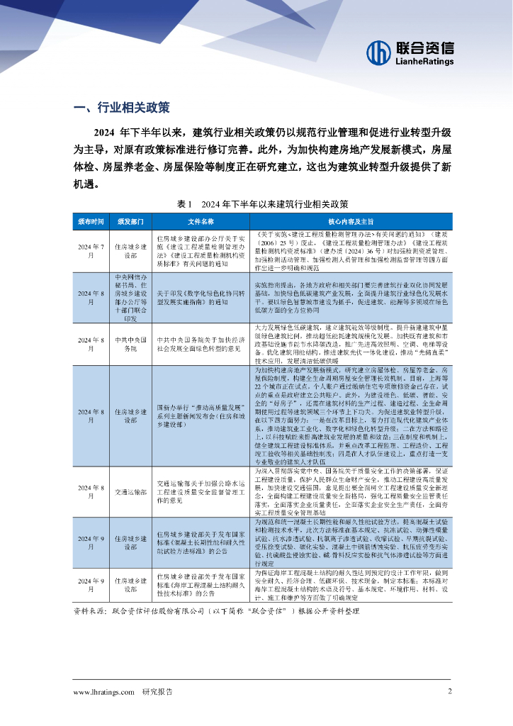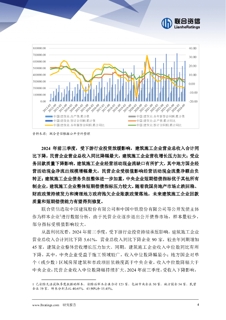 联合资信:建筑施工行业2024年三季度观察报告:建筑施工行业流动性持续承压,未来随着下游利好政策持续推出,偿债压力或有所缓解.pdf