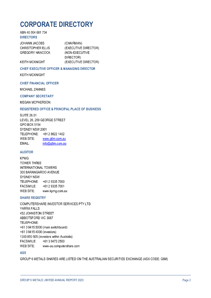 Group 6 Metals Limited(G6M)2023财年年度报告(英文版).pdf