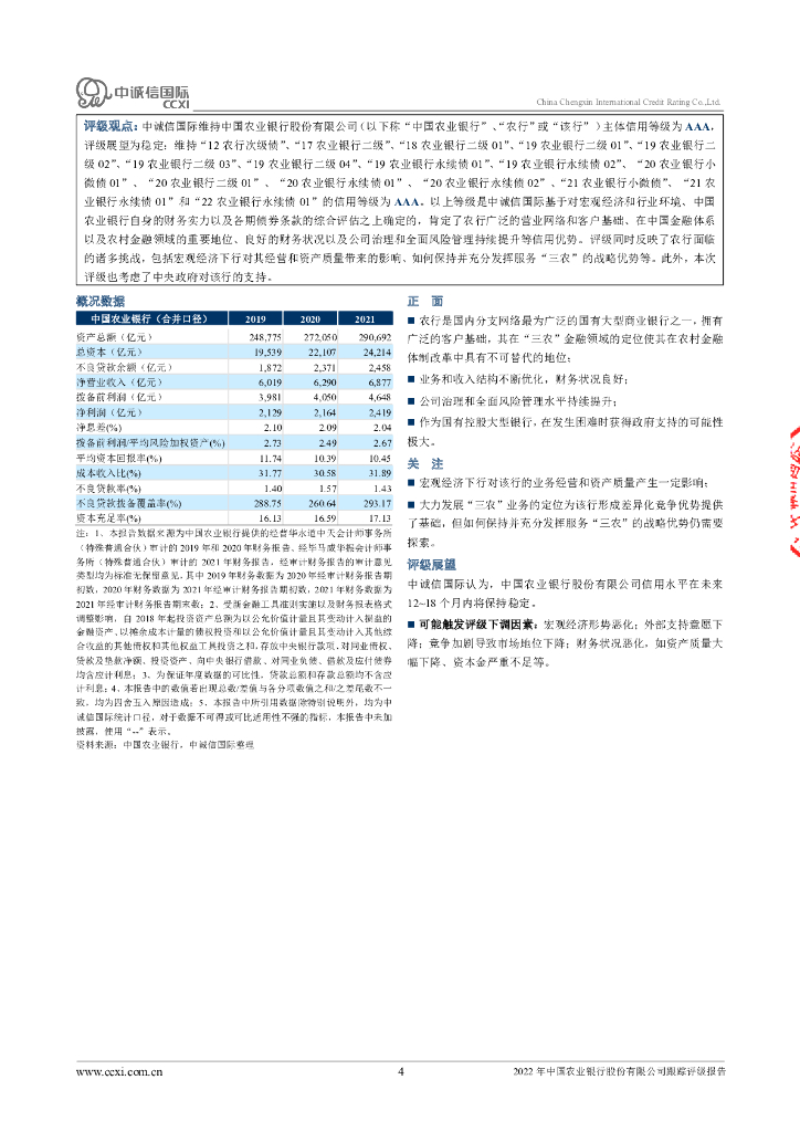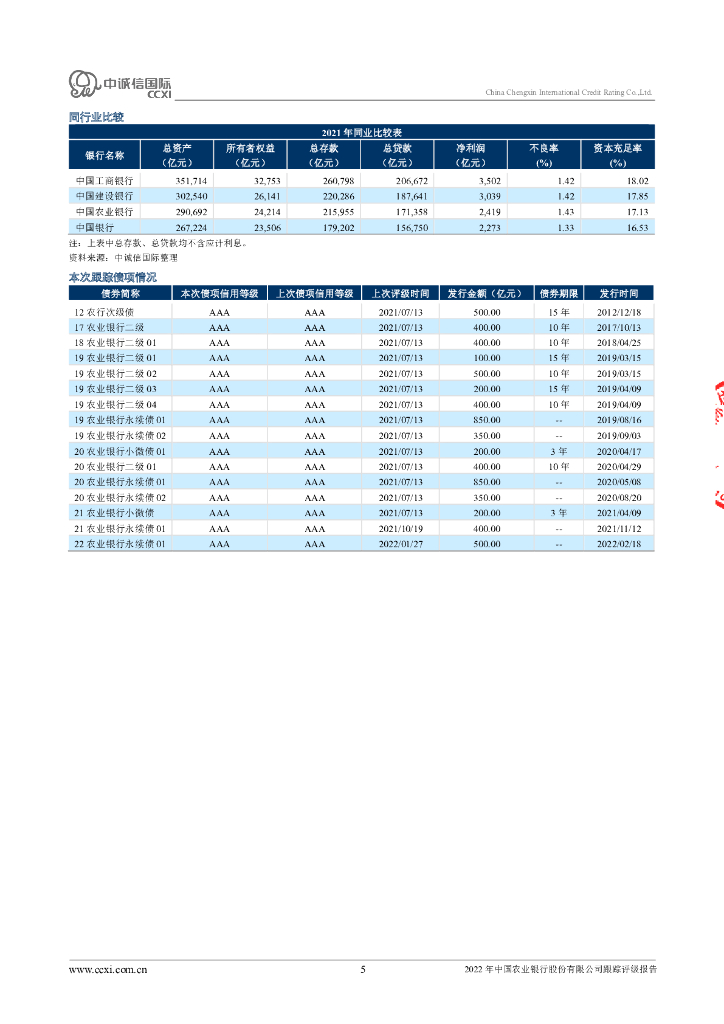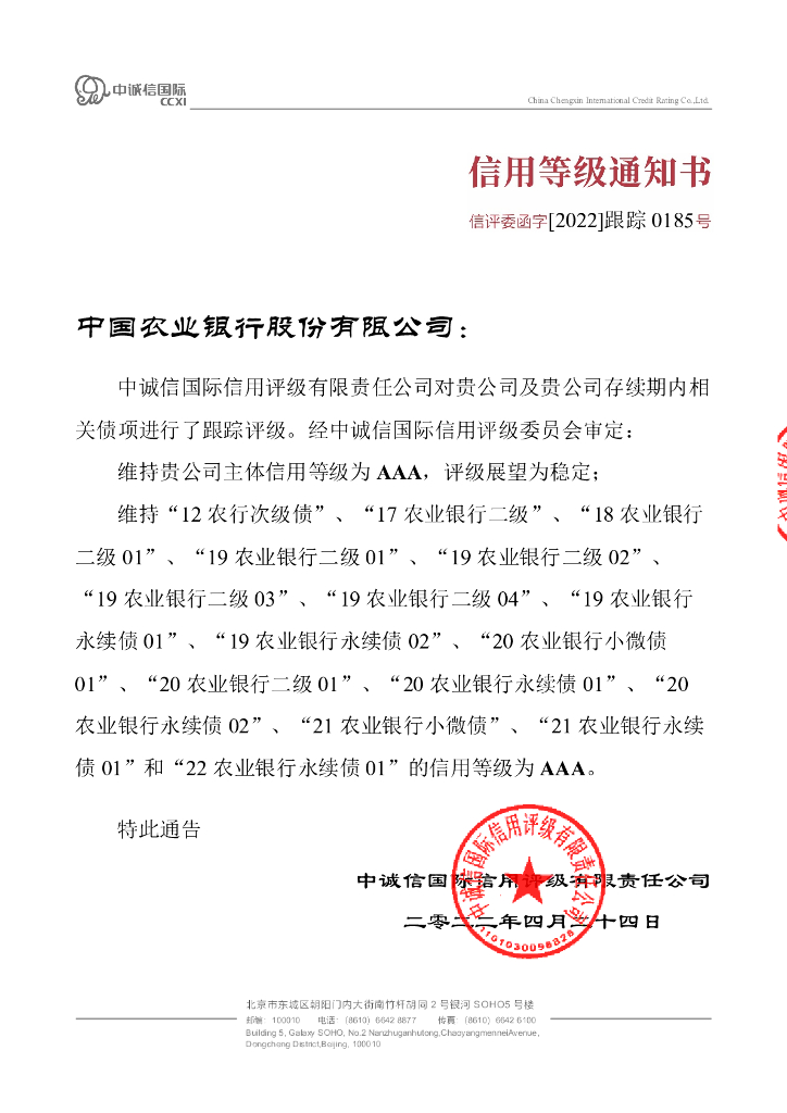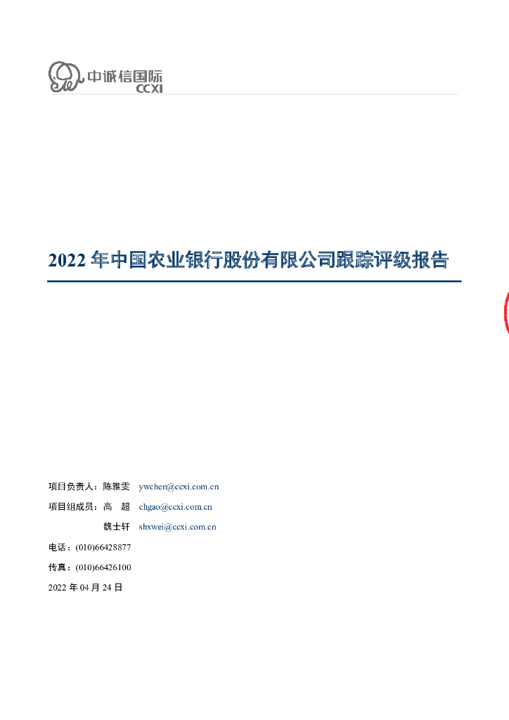 中诚信:2022年中国农业银行股份有限公司跟踪评级报告.pdf