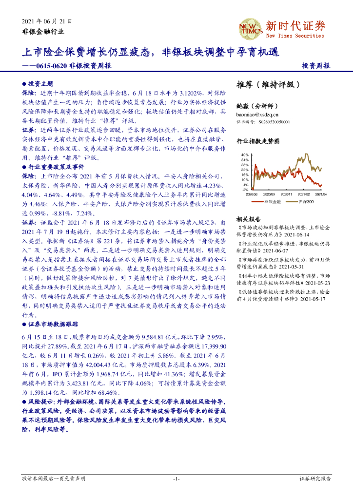 新时代证券:非银投资周报:上市险企保费增长仍显疲态,非银板块调整中孕育机遇.pdf