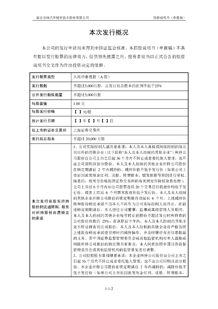南京泉峰汽车精密技术股份有限公司上交所主板IPO上市招股说明书.pdf