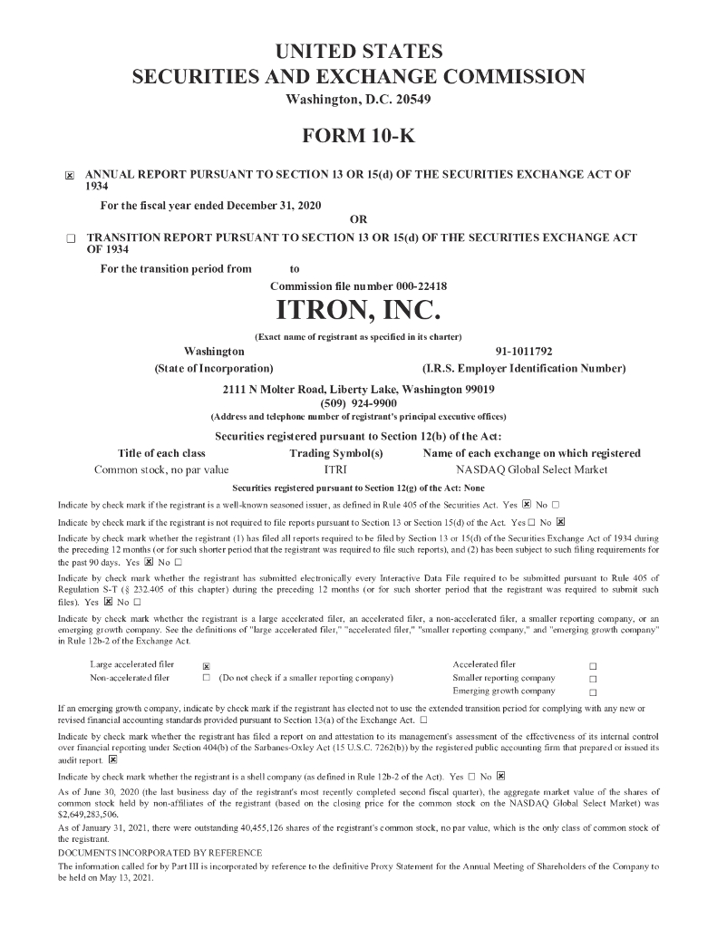 Itron, Inc.(ITRI)2020财年年度报告(英文版).pdf