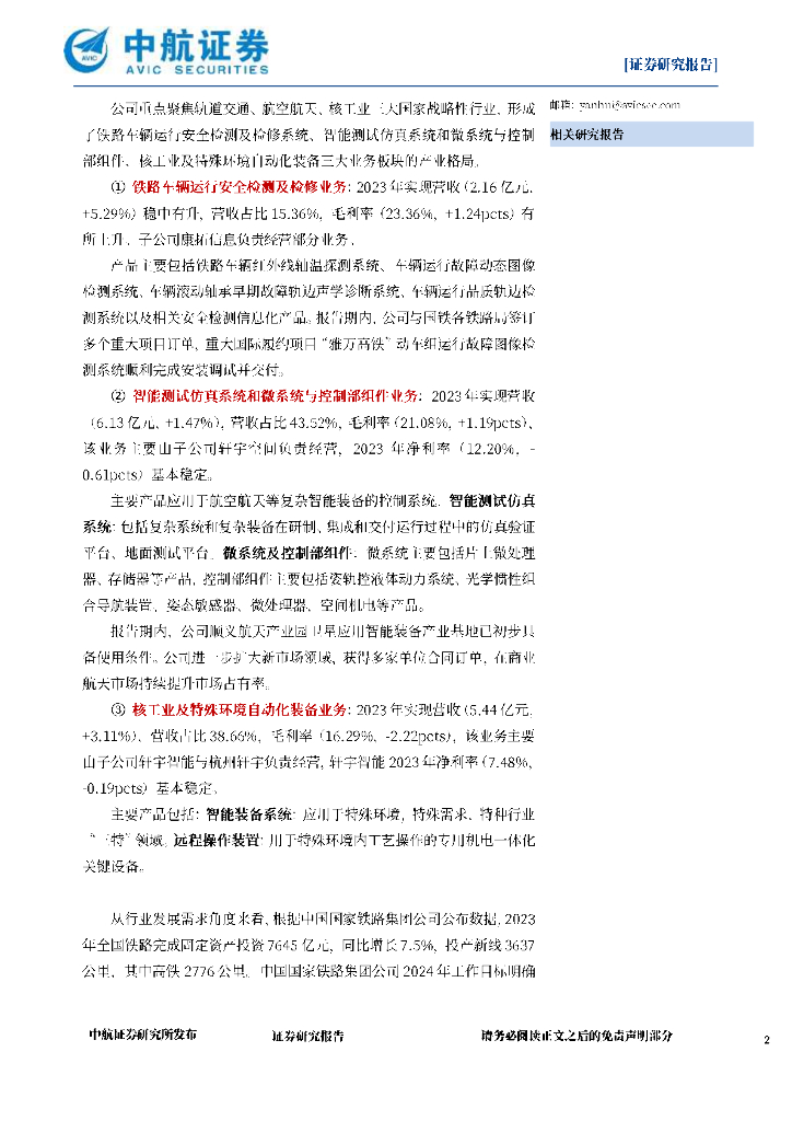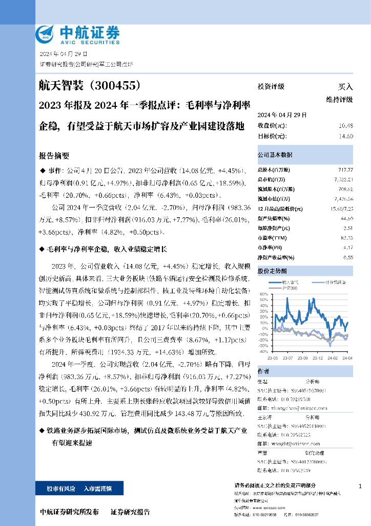 中航证券:航天智装(300455)-2023年报及2024年一季报点评:毛利率与净利率企稳,有望受益于航天市场扩容及产业园建设落地.pdf