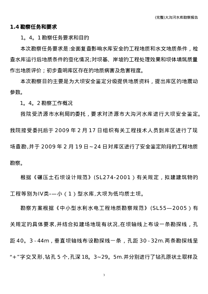 (完整)大沟河水库勘察报告.doc