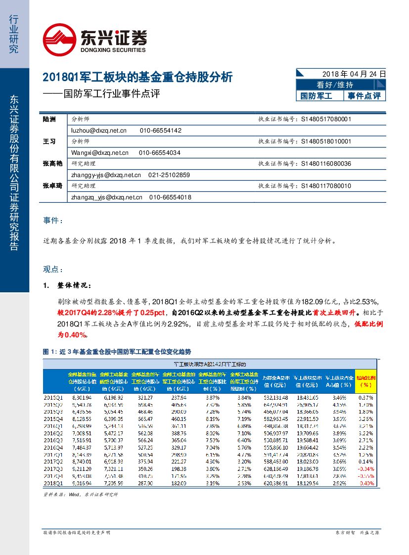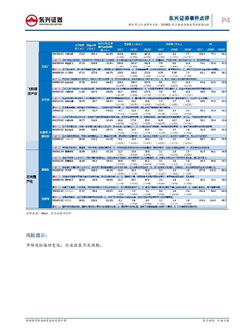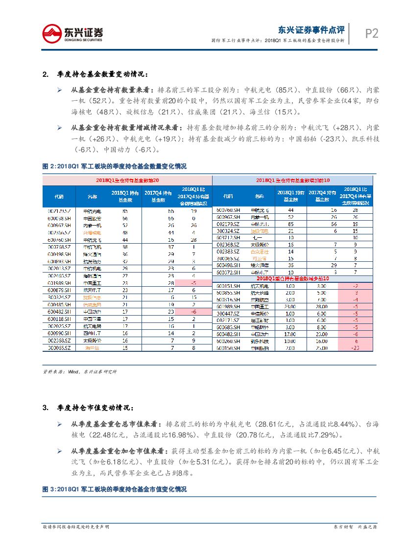 东兴证券:国防军工行业事件点评:2018Q1军工板块的基金重仓持股分析.pdf