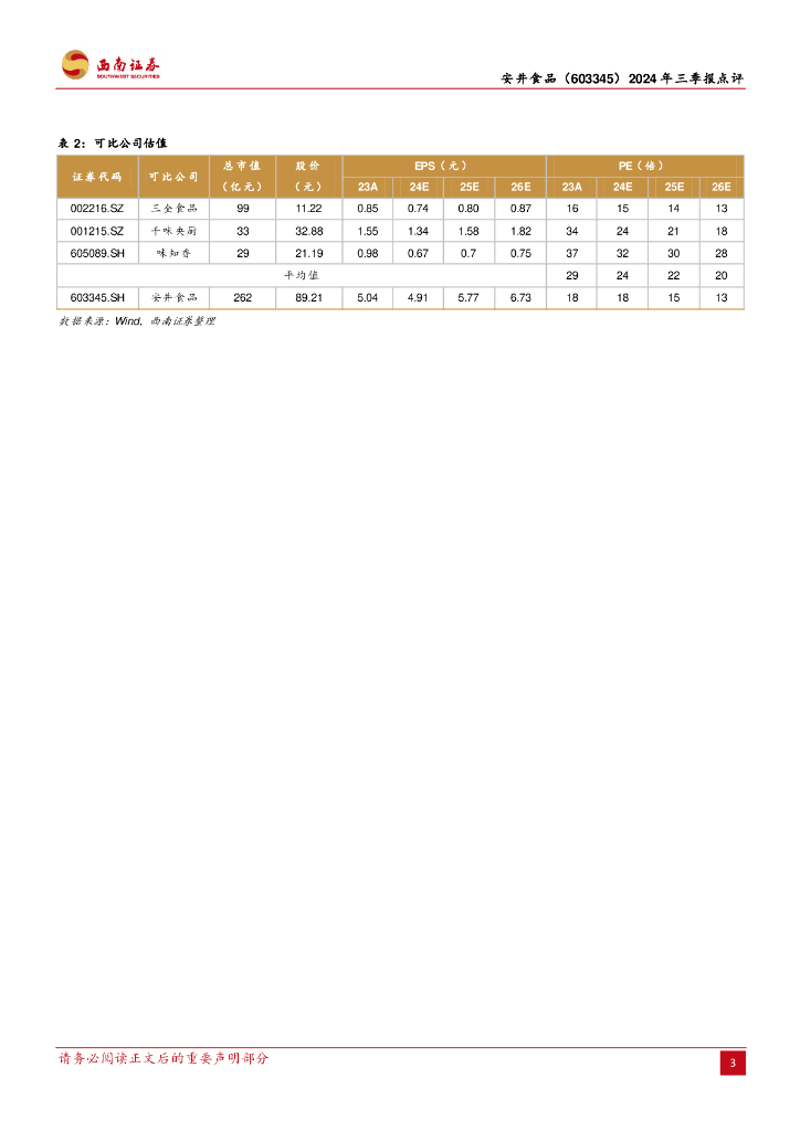 西南证券:安井食品(603345)-2024年三季报点评:Q3短期业绩承压,期待旺季经营改善.pdf