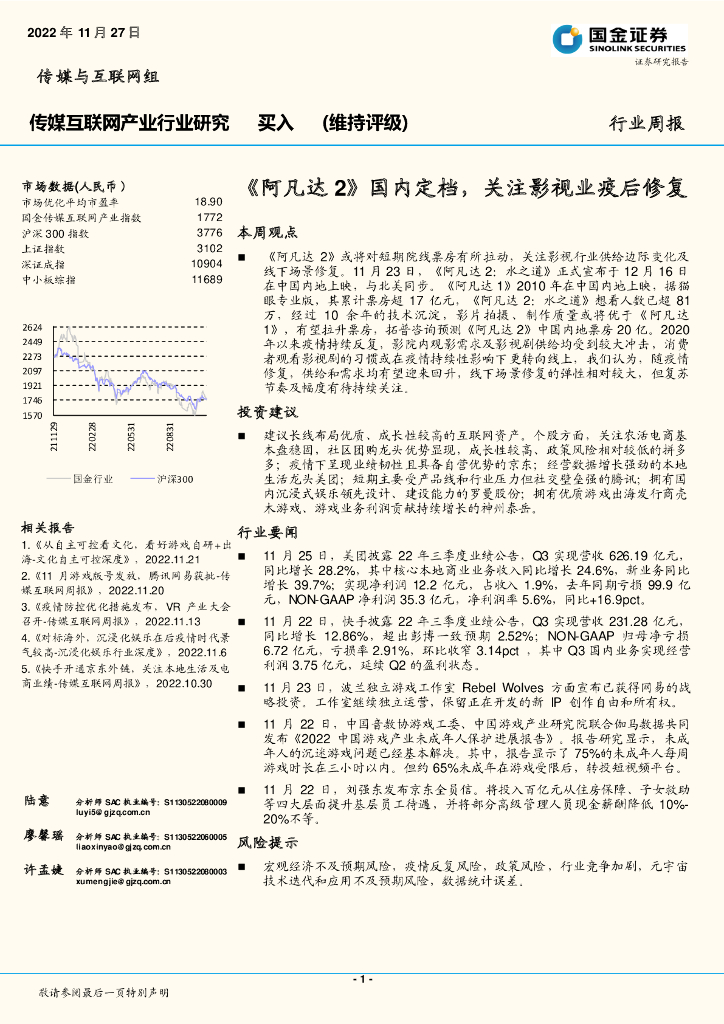 国金证券:传媒互联网产业行业研究:《阿凡达2》国内定档,关注影视业疫后修复.pdf