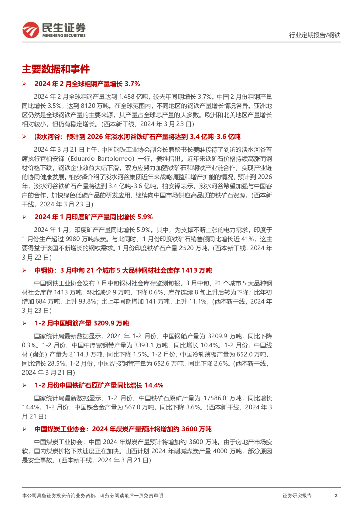 民生证券:钢铁周报:社库厂库双双去库,吨钢利润继续回升.pdf