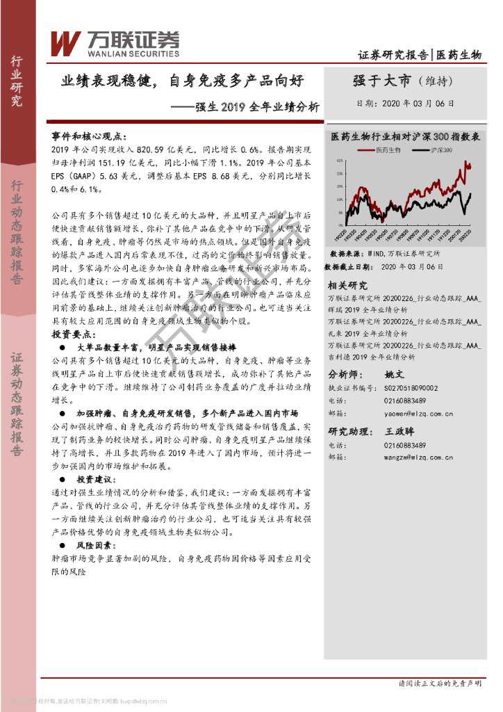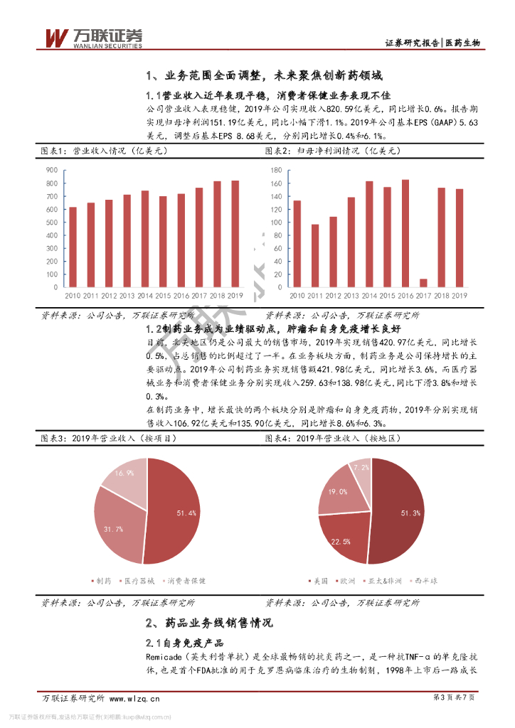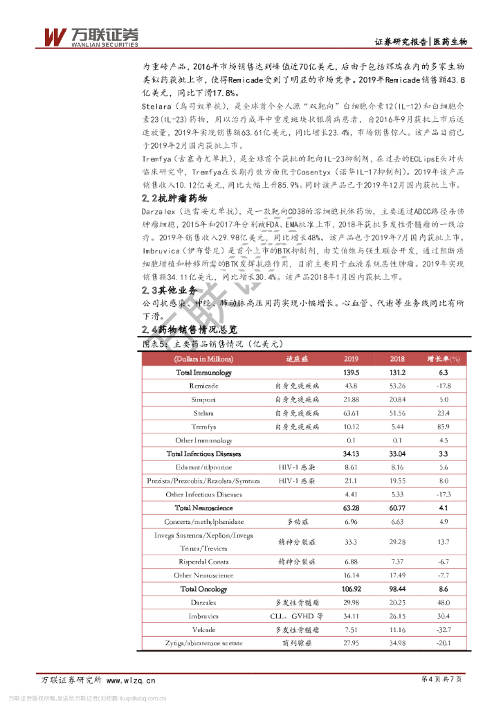 万联证券:医药生物:强生2019全年业绩分析-业绩表现稳健,自身免疫多产品向好.pdf