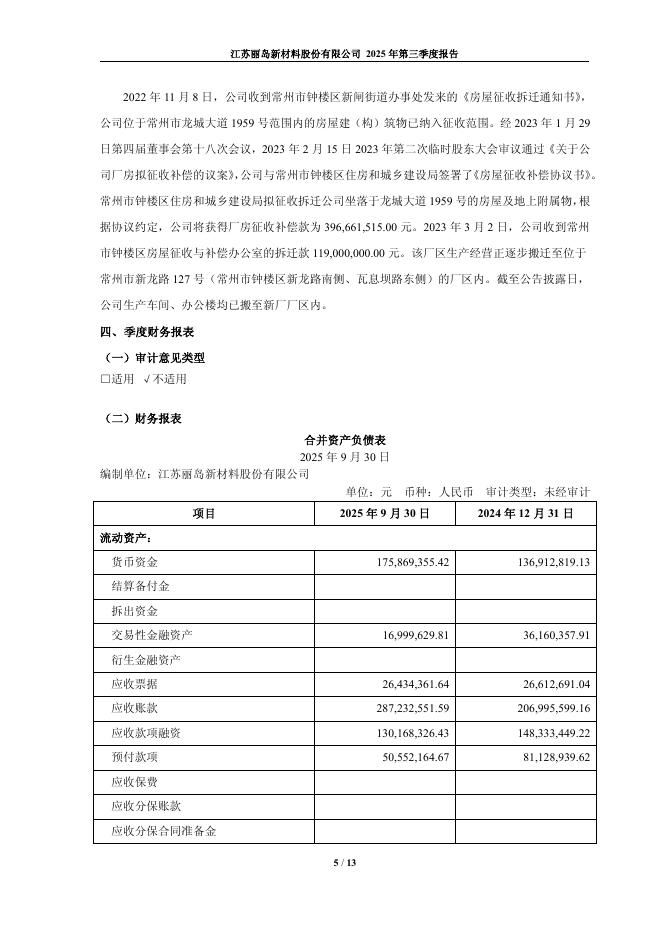 603937-丽岛新材:2025年第三季度报告.pdf