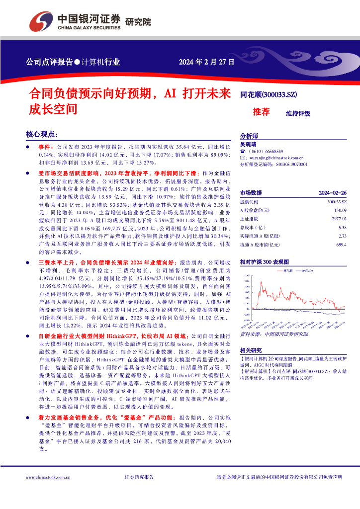 中国银河:同花顺(300033)-合同负债预示向好预期,AI打开未来成长空间.pdf
