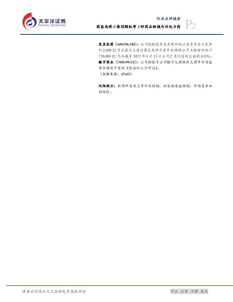 太平洋证券:医药生物:药监局将小柴胡颗粒等3种药品转换为非处方药.pdf