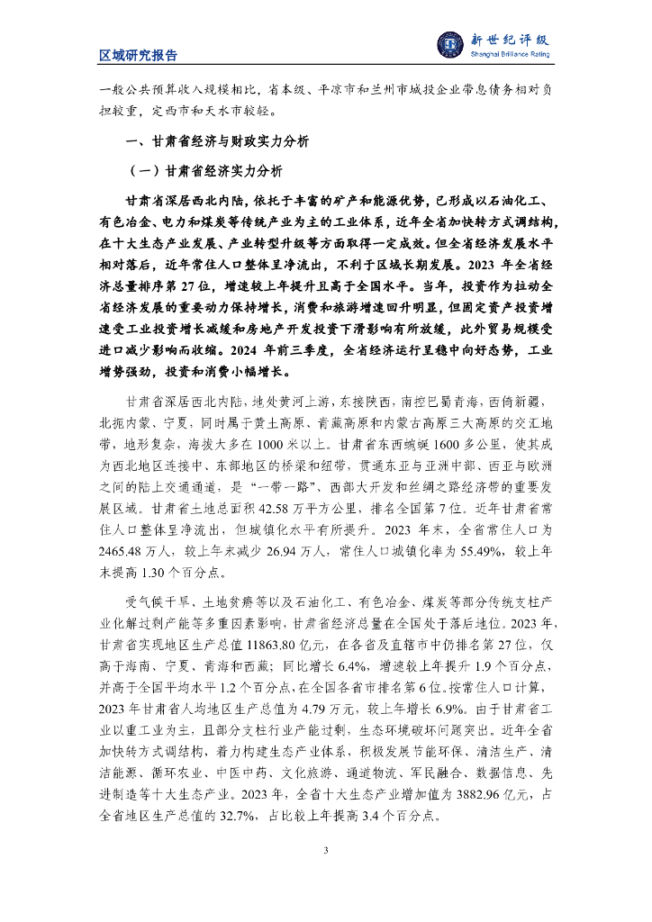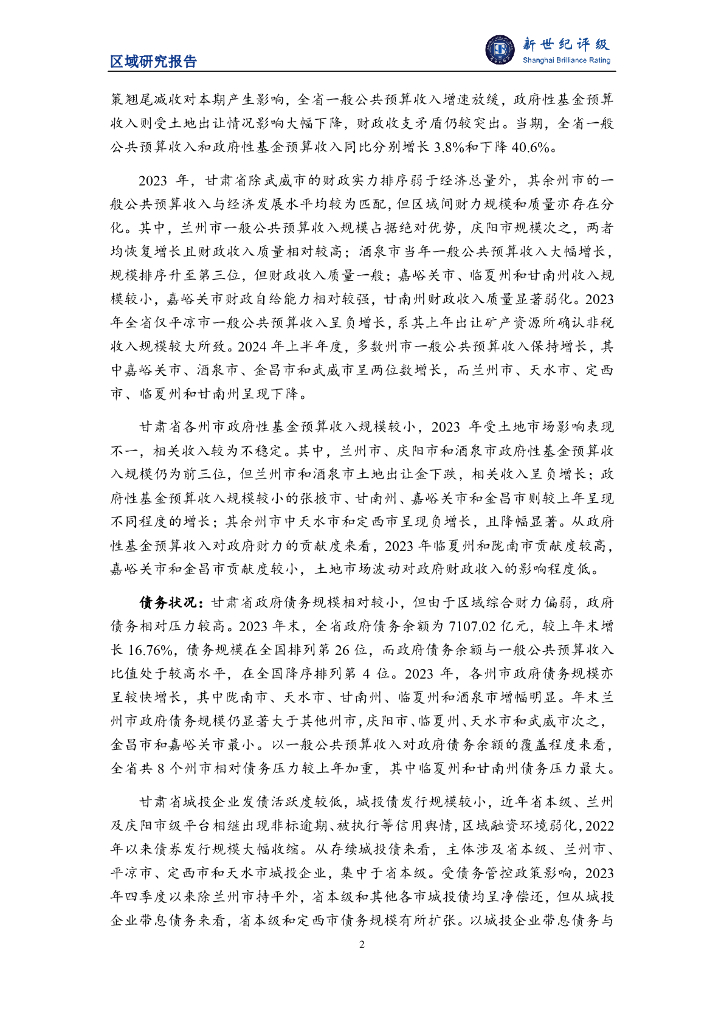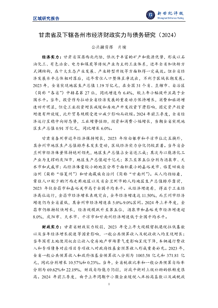 新世纪评级:甘肃省及下辖各州市经济财政实力与债务研究(2024).pdf