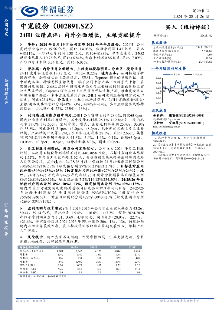 华福证券:中宠股份(002891)-24H1业绩点评:内外全面增长,主粮贡献提升.pdf