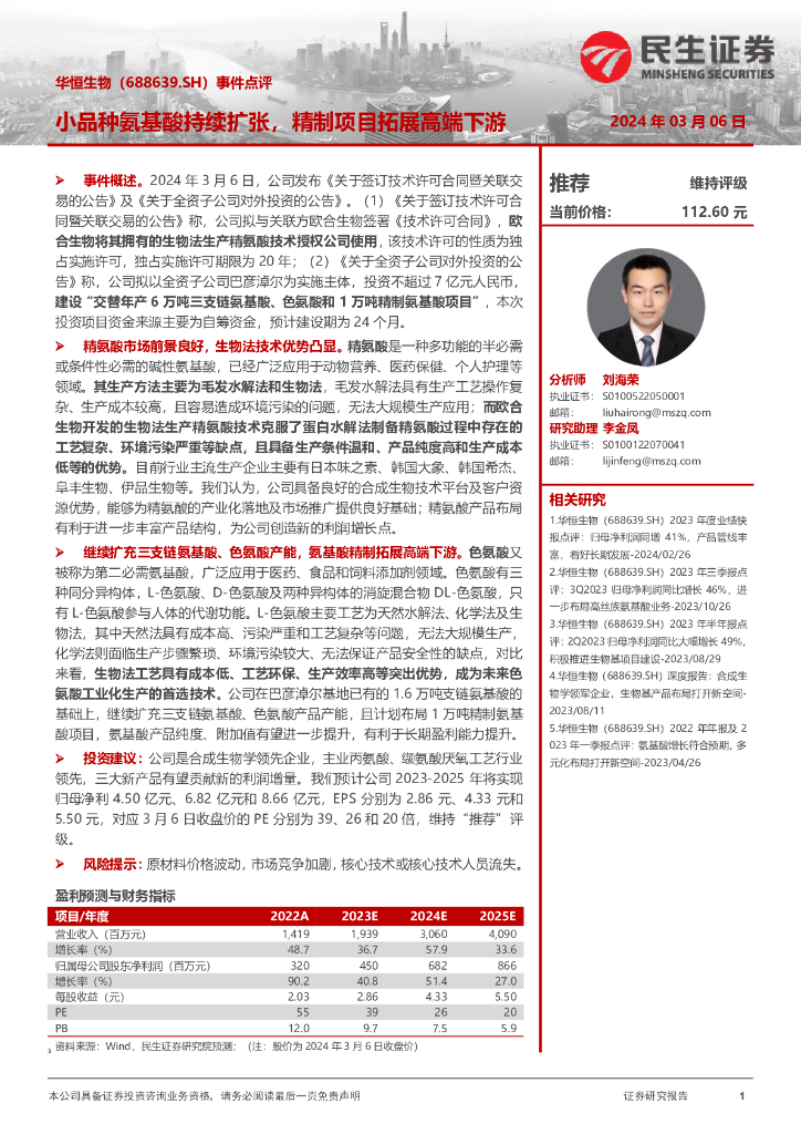 民生证券:华恒生物(688639)-事件点评:小品种氨基酸持续扩张,精制项目拓展高端下游.pdf