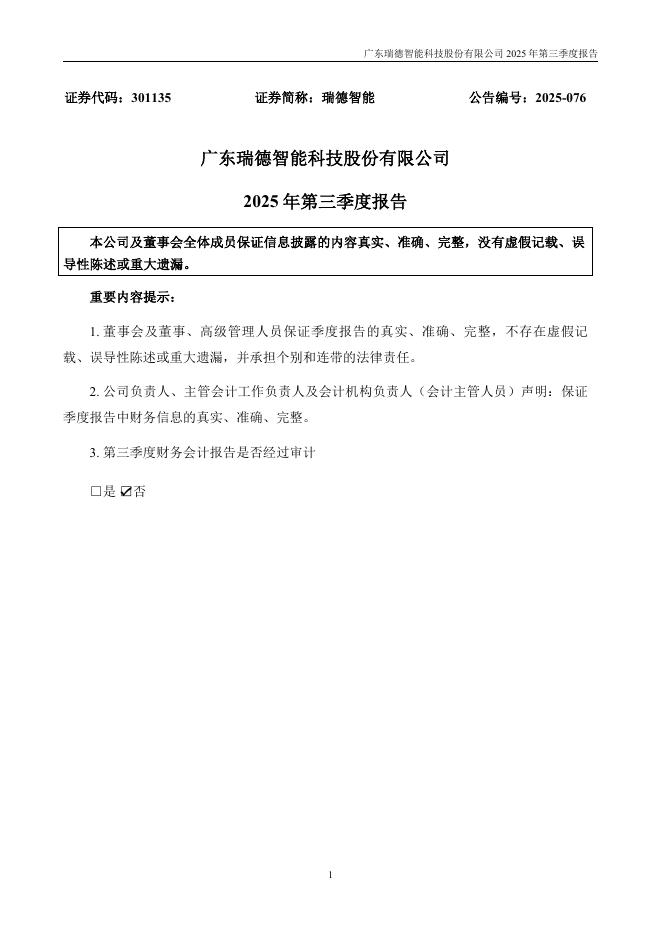 301135-瑞德智能:2025年三季度报告.pdf