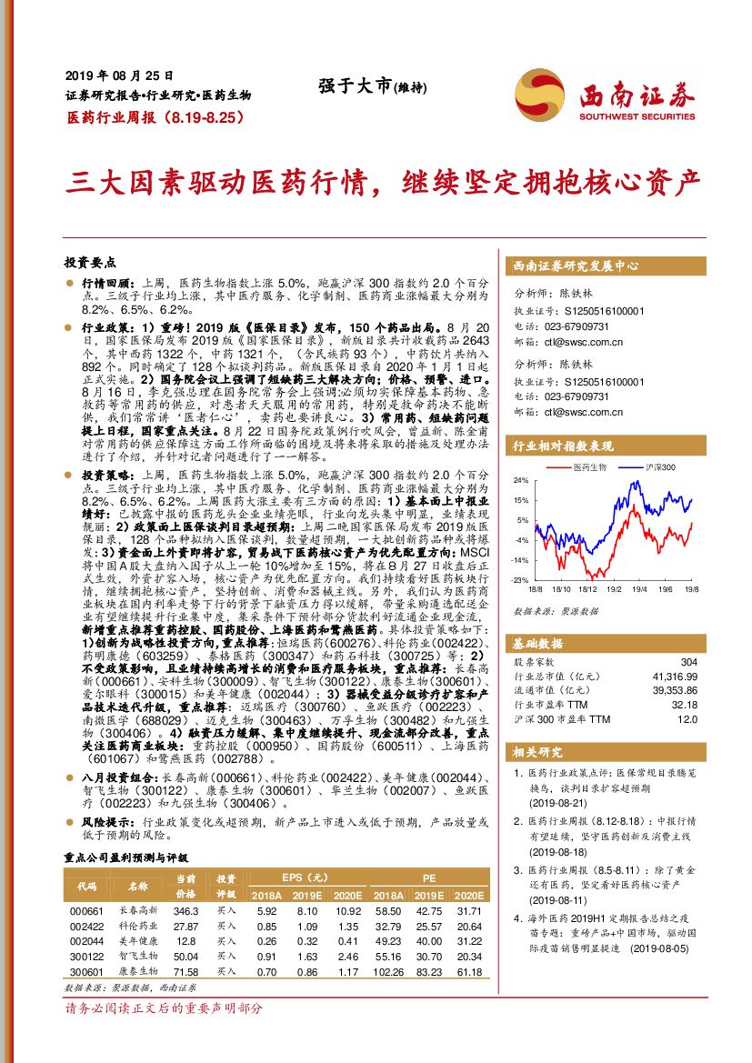 西南证券:医药行业周报:三大因素驱动医药行情,继续坚定拥抱核心资产.pdf