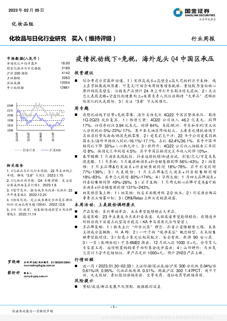 国金证券:化妆品与日化行业研究:疫情扰动线下+免税,海外龙头Q4中国区承压.pdf