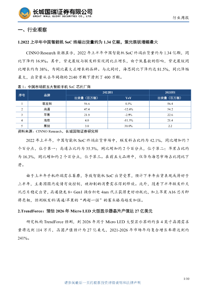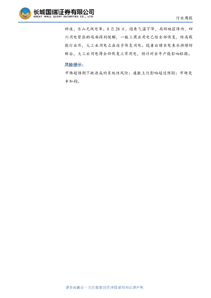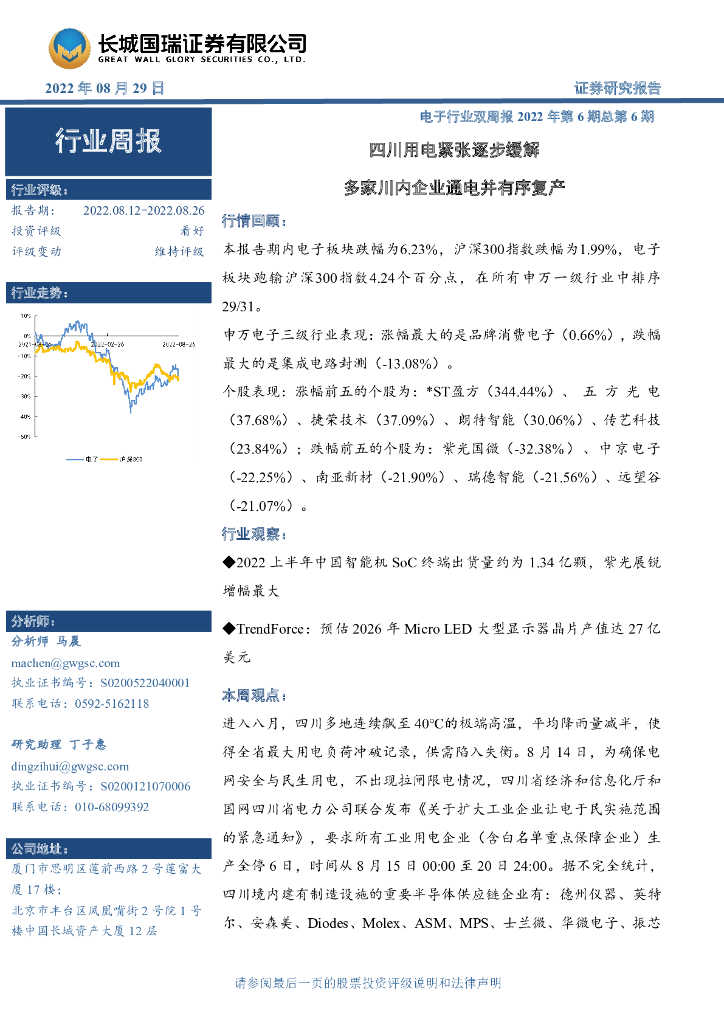 长城国瑞证券:电子行业双周报2022年第6期总第6期:四川用电紧张逐步缓解 多家川内企业通电并有序复产.pdf