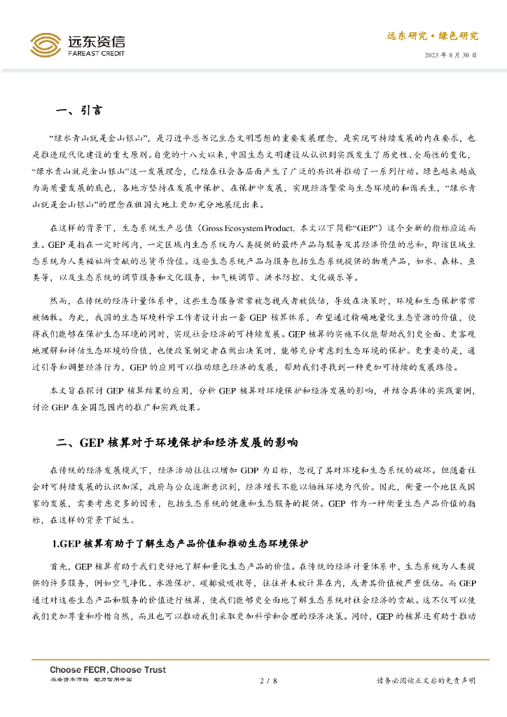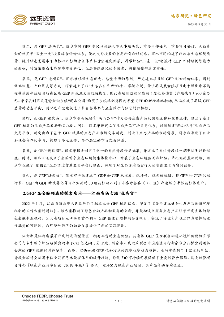 远东资信:生态系统生产总值(GEP)核算结果的应用初探.pdf