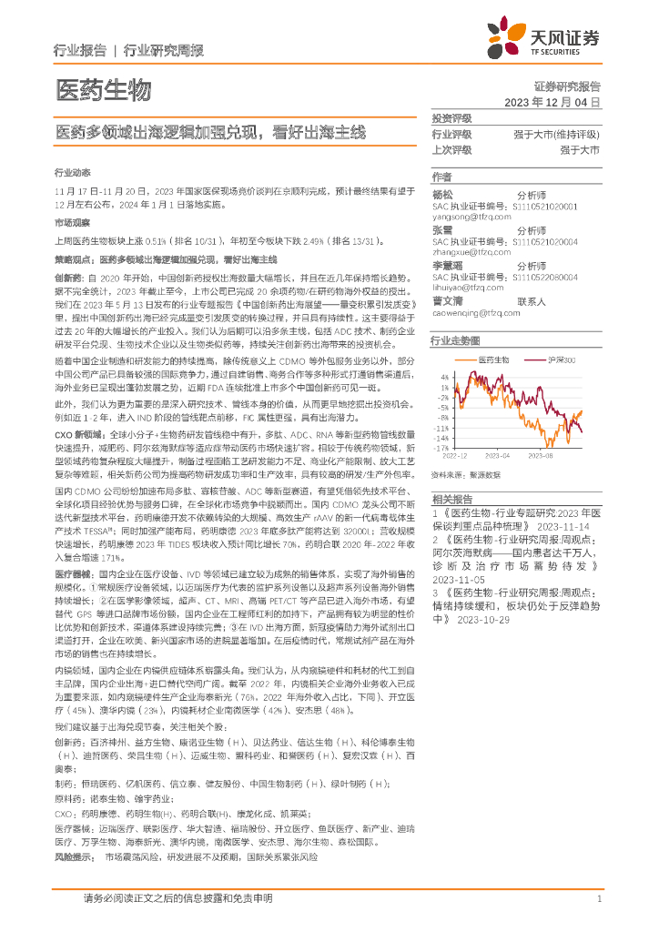 天风证券:医药生物行业研究周报:医药多领域出海逻辑加强兑现,看好出海主线.pdf