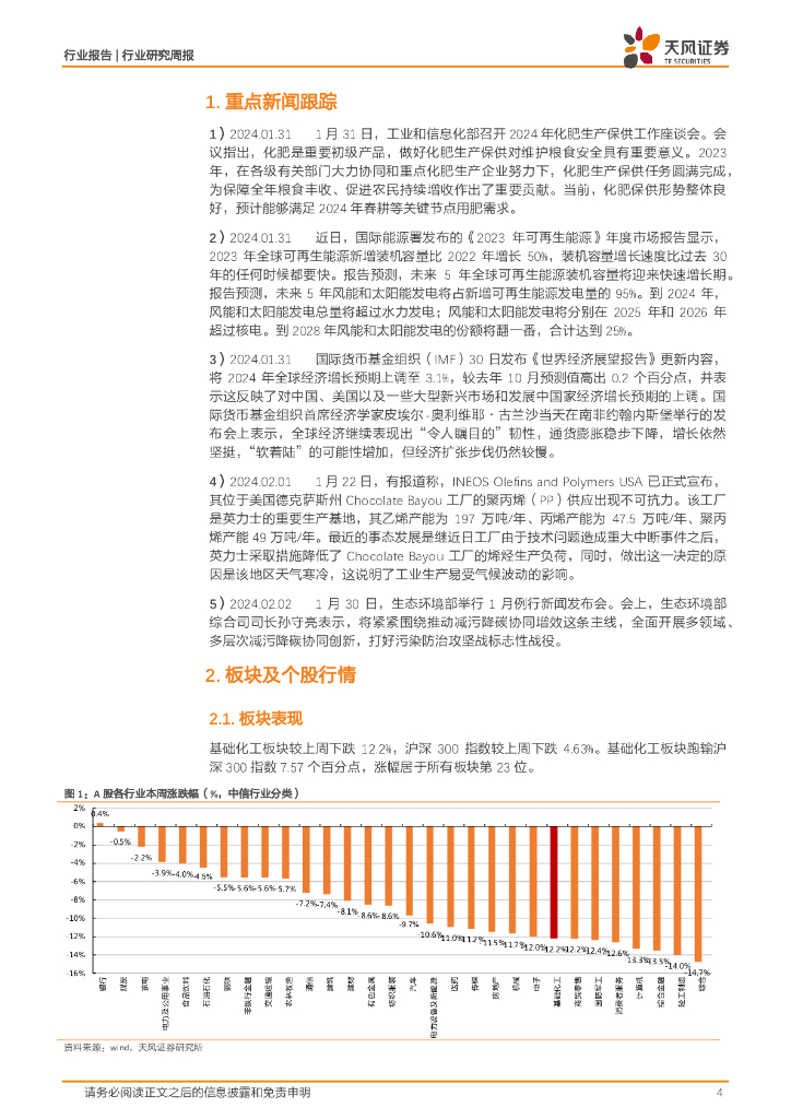天风证券:基础化工行业研究周报:工信部召开2024年化肥生产保供工作座谈会,R410a、丁二烯价格上涨.pdf