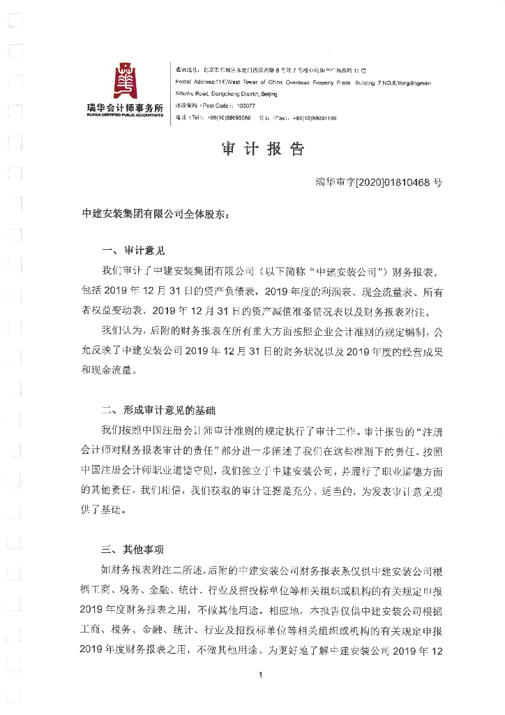 中建安装集团有限公司2019年度经审计的母公司财务报告.pdf