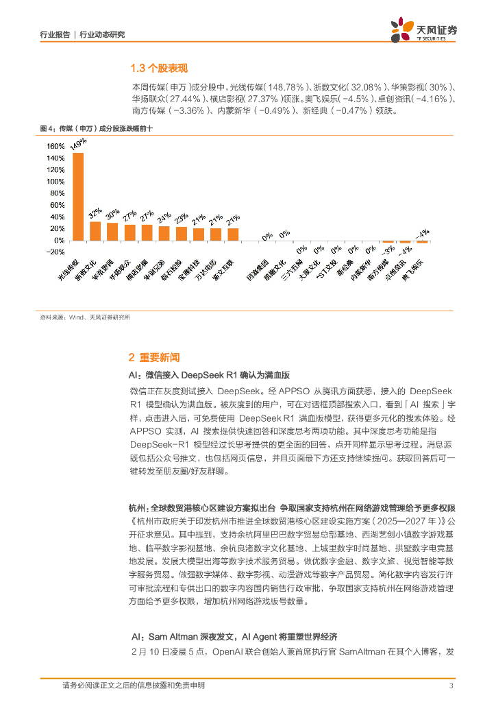天风证券:传媒周报:第6周:微信接入DeepSeek,关注腾讯AI乘数效应重估机会.pdf