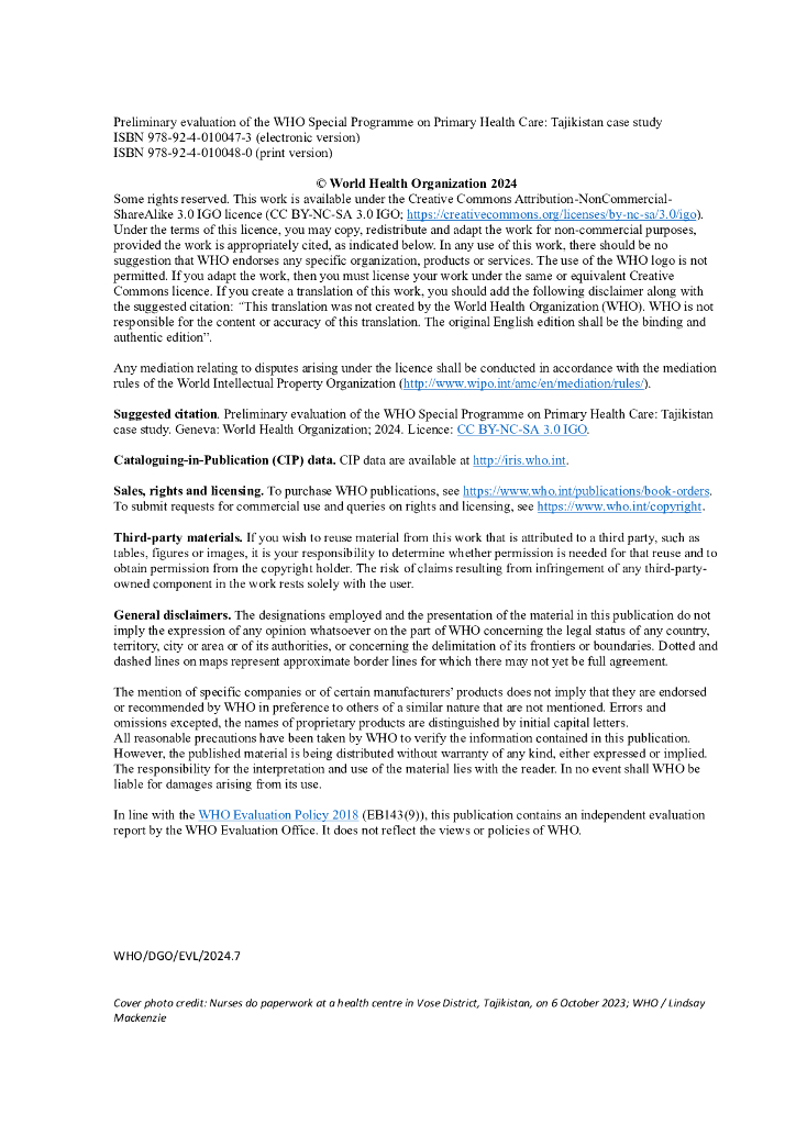WHO世界卫生组织:2025年WHO初级卫生保健特别计划的初步评估:塔吉克斯坦案例研究报告(英文版).pdf